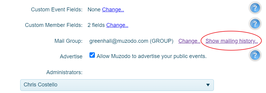 Scroll down to the Mail Group line and click 'Show mailing history..'