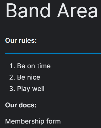 Now we create a protected (private) page with member-only information. In the WP menu on the left, click 'Pages', 'Add New Page' and add your band content.
