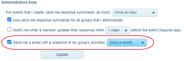 Get a weekly or monthly snapshot of your group's activities.