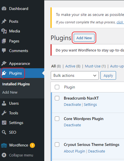 Installing a WordPress plugin is very easy.In the WordPress admin console, click Plugins -> Add new