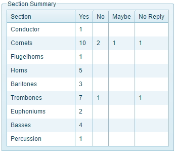 This gives you a broad overview of how balanced the group is (ok, we all know musicians are unbalanced, but at least you'll know how balanced the instrumentation/voices are!) :).